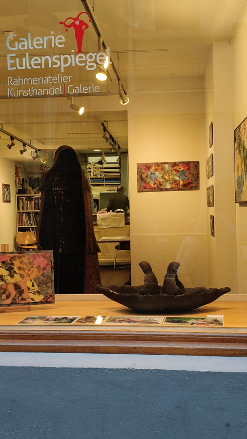 Im Herbst 2024 habe ich die ersten Tonbrocken ins Wasser geworfen, der Ton hat formlos geruht im Winter, im Frühling habe ich ihn gestampft, bis er wieder formbar wurde und im Sommer habe ich mit ihm modelliert. An der Ausstellung in der Galerie Eulenspiegel in Basel war das Herzstück ausgestellt. Und nun ist dieses Herzstück auch wieder vom Wasser entformt worden…